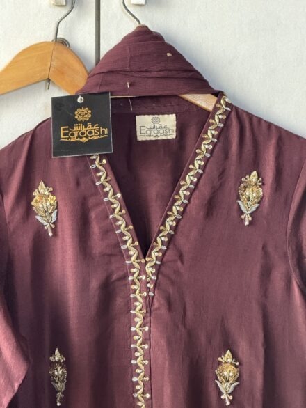 Butter Silk Outfit with Korean Charmeuse Ajrak Mukesh Shawl