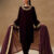 Designed with a rich, dark maroon 9000 micro velvet, this three-piece suit is perfect for a warm and royal look. The neckline is the best part, featuring a thick round border of gold flowers that are all made by hand. You will also find this beautiful gold handwork on the ends of the sleeves to give it a finished look. Because it is made from premium velvet, the fabric feels very soft and has a nice glow when it catches the light.