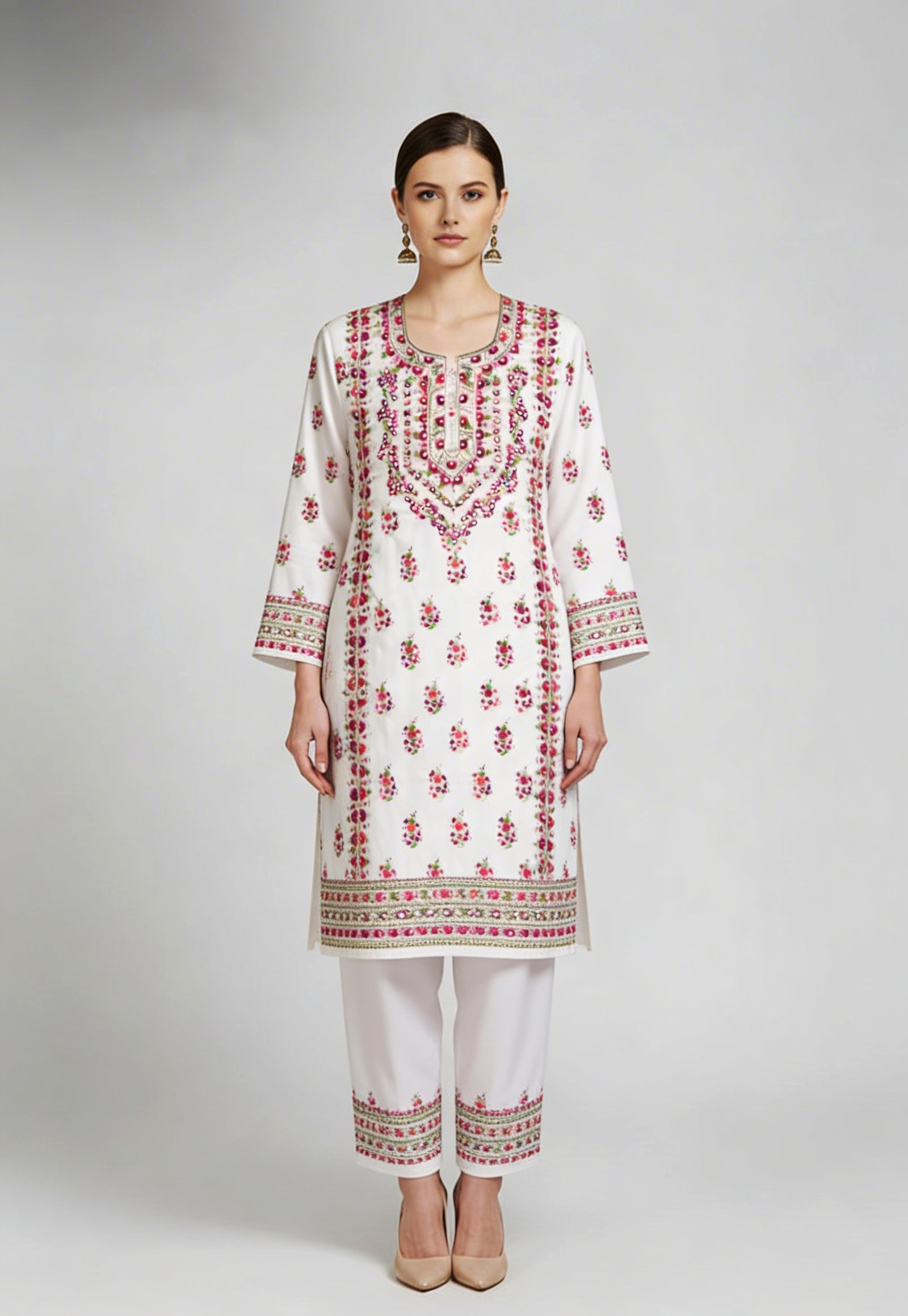 Style: Custom hand-embroidered kurta tailored to your requirements.