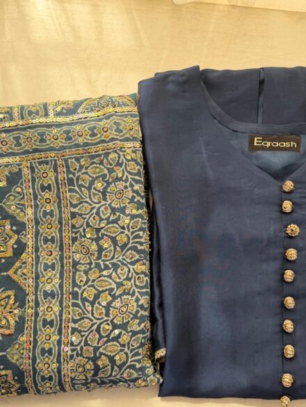 Pure 80 grams handcrafted rawsilk blockprint outfit PKR 65,000